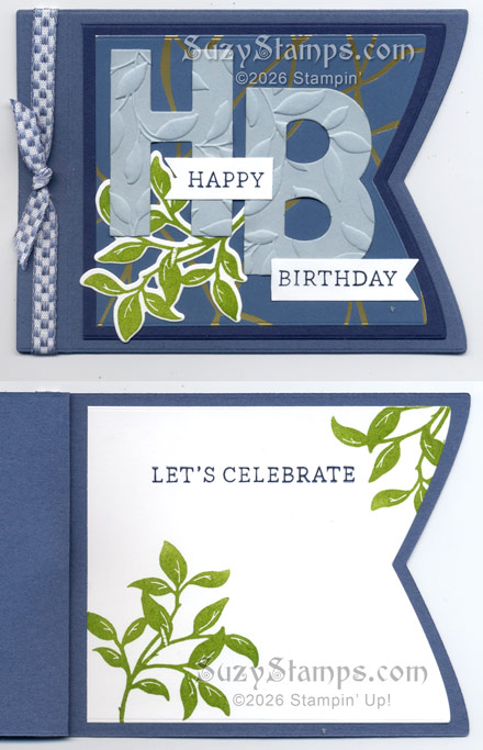 This card from the April Stampin’ Class uses the Simply Said Stamp Set, Paradise Garden Stamp Set, Hybrid Embossing Folder & Dies, Party Banners Dies, Party Alphabet Dies, Three Banner Punch, Kintsugi Inspirations 12”x12” Specialty Designer Series Paper and Misty Moonlight Checkered Trim. Register today for this fun class! Paid registration must be received by April 1.