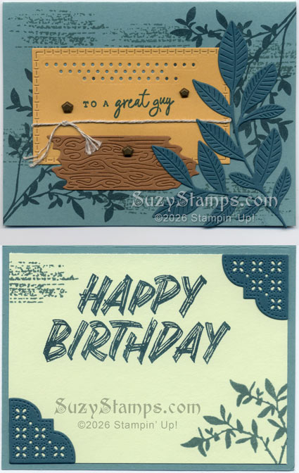 This card from the May Stampin’ Class uses the Nature’s Symphony Stamp Set & Dies, Layered Thoughts Stamp Set, Textured Notes Dies, Beautifully Celebrated Dies, Linen Thread and Faux Bronze Pentagons. This would make a great masculine birthday or Fathers Day card. Have you registered yet? Paid registration must be received by May 1.